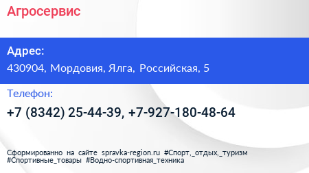 Агросервис по адресу 430904, Мордовия, Ялга, Российская, 5 в дальнейшем Организация, размещена в следующих категориях: