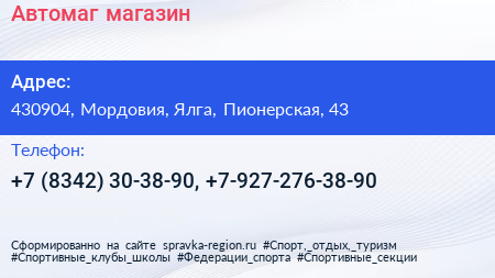 Автомаг, магазин по адресу 430904, Мордовия, Ялга, Пионерская, 43 в дальнейшем Организация, размещена в следующих категориях: