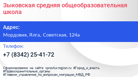 Зыковская средняя общеобразовательная школа по адресу Мордовия, Ялга, Советская, 124а в дальнейшем Организация, размещена в следующих категориях: