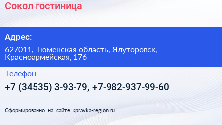 Сокол, гостиница по адресу 627011, Тюменская область, Ялуторовск, Красноармейская, 176 в дальнейшем Организация, размещена в следующих категориях: