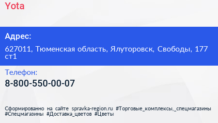 Yota по адресу 627011, Тюменская область, Ялуторовск, Свободы, 177 ст1 в дальнейшем Организация, размещена в следующих категориях: