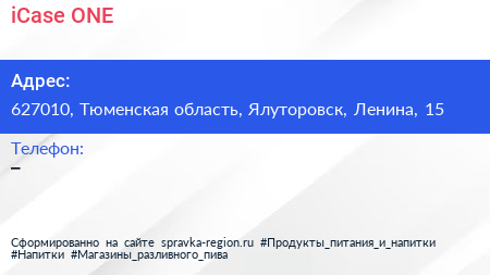 iCase.ONE по адресу 627010, Тюменская область, Ялуторовск, Ленина, 15 в дальнейшем Организация, размещена в следующих категориях: