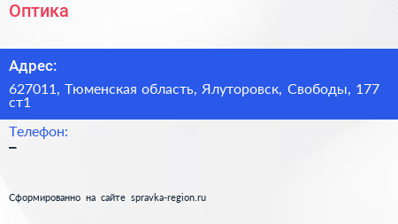 Адрес: Тюменская область, Ялуторовск, Свободы, 177 ст1