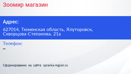 Зоомир, магазин по адресу 627014, Тюменская область, Ялуторовск, Скворцова-Степанова, 21а в дальнейшем Организация, размещена в следующих категориях: