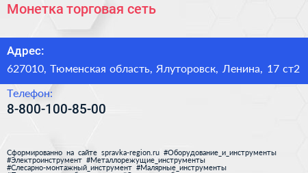 Монетка, торговая сеть по адресу 627010, Тюменская область, Ялуторовск, Ленина, 17 ст2 в дальнейшем Организация, размещена в следующих категориях: