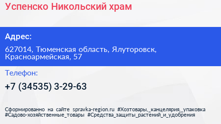 Успенско-Никольский храм по адресу 627014, Тюменская область, Ялуторовск, Красноармейская, 57 в дальнейшем Организация, размещена в следующих категориях: