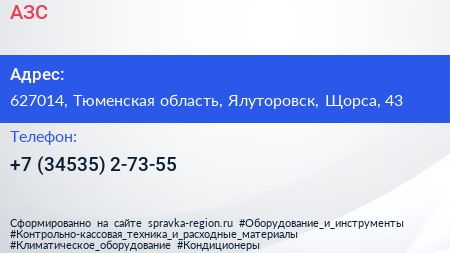 АЗС по адресу 627014, Тюменская область, Ялуторовск, Щорса, 43 в дальнейшем Организация, размещена в следующих категориях: