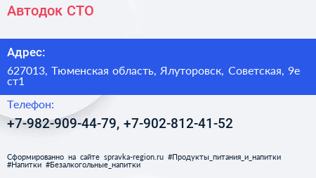 Автодок, СТО по адресу 627013, Тюменская область, Ялуторовск, Советская, 9е ст1 в дальнейшем Организация, размещена в следующих категориях: