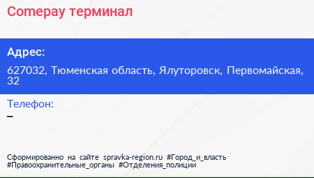 Comepay, терминал по адресу 627032, Тюменская область, Ялуторовск, Первомайская, 32 в дальнейшем Организация, размещена в следующих категориях: