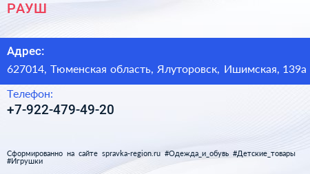 РАУШ по адресу 627014, Тюменская область, Ялуторовск, Ишимская, 139а в дальнейшем Организация, размещена в следующих категориях: