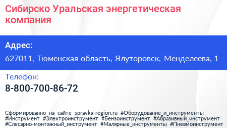 Сибирско-Уральская энергетическая компания по адресу 627011, Тюменская область, Ялуторовск, Менделеева, 1 в дальнейшем Организация, размещена в следующих категориях: