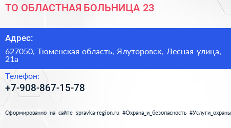 ТО ОБЛАСТНАЯ БОЛЬНИЦА №23 по адресу 627050, Тюменская область, Ялуторовск, Лесная улица, 21а в дальнейшем Организация, размещена в следующих категориях: