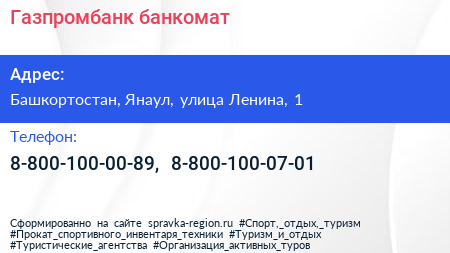 Газпромбанк, банкомат по адресу Башкортостан, Янаул, улица Ленина, 1 в дальнейшем Организация, размещена в следующих категориях: