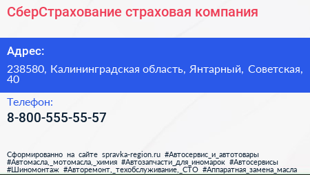 СберСтрахование, страховая компания по адресу 238580, Калининградская область, Янтарный, Советская, 40 в дальнейшем Организация, размещена в следующих категориях: