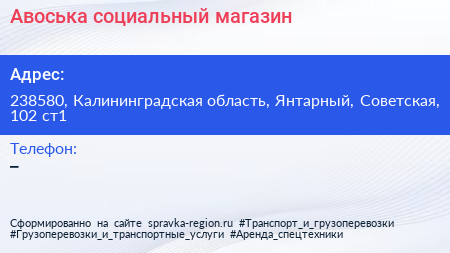 Авоська, социальный магазин по адресу 238580, Калининградская область, Янтарный, Советская, 102 ст1 в дальнейшем Организация, размещена в следующих категориях: