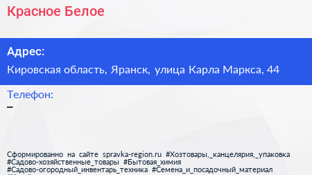 Красное & Белое по адресу Кировская область, Яранск, улица Карла Маркса, 44 в дальнейшем Организация, размещена в следующих категориях: