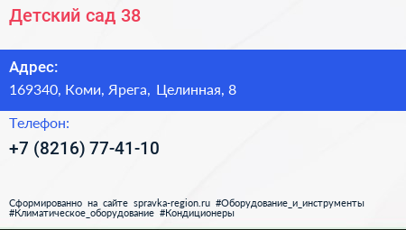 Детский сад №38 по адресу 169340, Коми, Ярега, Целинная, 8 в дальнейшем Организация, размещена в следующих категориях: