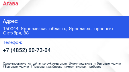 Агава по адресу 150044, Ярославская область, Ярославль, проспект Октября, 88 в дальнейшем Организация, размещена в следующих категориях:
