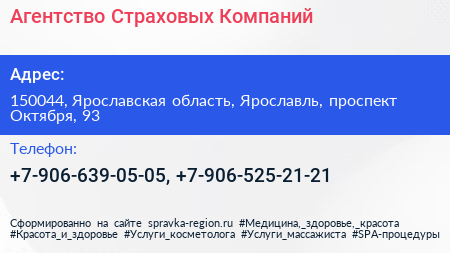 Агентство Страховых Компаний по адресу 150044, Ярославская область, Ярославль, проспект Октября, 93 в дальнейшем Организация, размещена в следующих категориях: