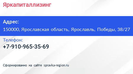 Яркапиталлизинг по адресу 150000, Ярославская область, Ярославль, Победы, 38/27 в дальнейшем Организация, размещена в следующих категориях: