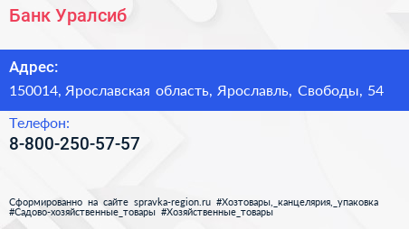 Банк Уралсиб по адресу 150014, Ярославская область, Ярославль, Свободы, 54 в дальнейшем Организация, размещена в следующих категориях: