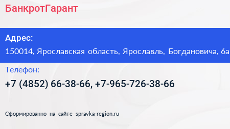БанкротГарант по адресу 150014, Ярославская область, Ярославль, Богдановича, 6а в дальнейшем Организация, размещена в следующих категориях: