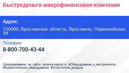 Быстроденьги, микрофинансовая компания по адресу 150000, Ярославская область, Ярославль, Первомайская, 39 в дальнейшем Организация, размещена в следующих категориях: