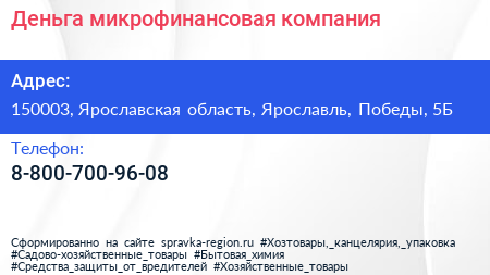 Деньга, микрофинансовая компания по адресу 150003, Ярославская область, Ярославль, Победы, 5Б в дальнейшем Организация, размещена в следующих категориях: