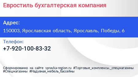 Евростиль, бухгалтерская компания по адресу 150003, Ярославская область, Ярославль, Победы, 6 в дальнейшем Организация, размещена в следующих категориях: