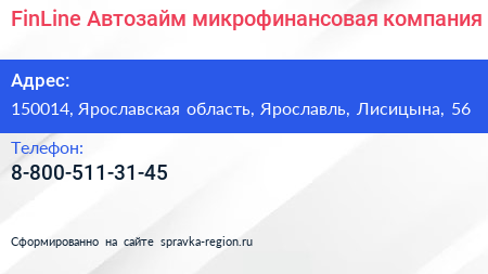 FinLine-Автозайм, микрофинансовая компания по адресу 150014, Ярославская область, Ярославль, Лисицына, 56 в дальнейшем Организация, размещена в следующих категориях: