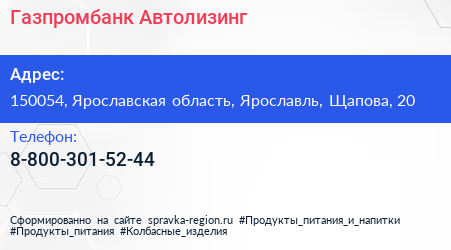 Газпромбанк Автолизинг по адресу 150054, Ярославская область, Ярославль, Щапова, 20 в дальнейшем Организация, размещена в следующих категориях:
