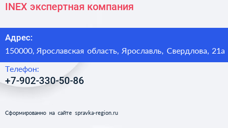 INEX, экспертная компания по адресу 150000, Ярославская область, Ярославль, Свердлова, 21а в дальнейшем Организация, размещена в следующих категориях: