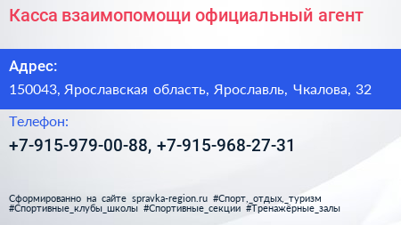 Касса взаимопомощи, официальный агент по адресу 150043, Ярославская область, Ярославль, Чкалова, 32 в дальнейшем Организация, размещена в следующих категориях: