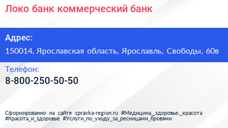 Локо-банк, коммерческий банк по адресу 150014, Ярославская область, Ярославль, Свободы, 60в в дальнейшем Организация, размещена в следующих категориях: