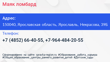 Маяк, ломбард по адресу 150040, Ярославская область, Ярославль, Некрасова, 39Б в дальнейшем Организация, размещена в следующих категориях: