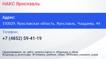 НАКС-Ярославль по адресу 150029, Ярославская область, Ярославль, Чаадаева, 44 в дальнейшем Организация, размещена в следующих категориях: