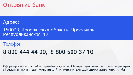Открытие, банк по адресу 150003, Ярославская область, Ярославль, Республиканская, 12 в дальнейшем Организация, размещена в следующих категориях:
