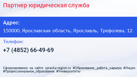 Партнер, юридическая служба по адресу 150000, Ярославская область, Ярославль, Трефолева, 12 в дальнейшем Организация, размещена в следующих категориях:
