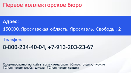 Первое коллекторское бюро по адресу 150000, Ярославская область, Ярославль, Свободы, 2 в дальнейшем Организация, размещена в следующих категориях: