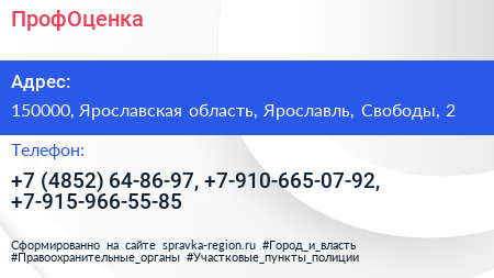 ПрофОценка по адресу 150000, Ярославская область, Ярославль, Свободы, 2 в дальнейшем Организация, размещена в следующих категориях: