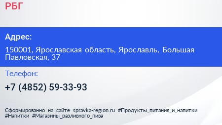 РБГ по адресу 150001, Ярославская область, Ярославль, Большая Павловская, 37 в дальнейшем Организация, размещена в следующих категориях: