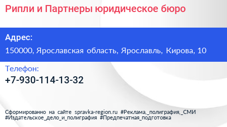 Рипли и Партнеры, юридическое бюро по адресу 150000, Ярославская область, Ярославль, Кирова, 10 в дальнейшем Организация, размещена в следующих категориях: