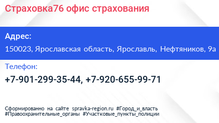 Страховка76, офис страхования по адресу 150023, Ярославская область, Ярославль, Нефтяников, 9а в дальнейшем Организация, размещена в следующих категориях: