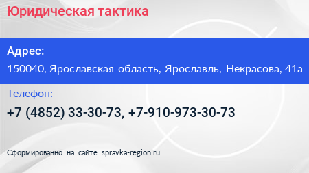 Юридическая тактика по адресу 150040, Ярославская область, Ярославль, Некрасова, 41а в дальнейшем Организация, размещена в следующих категориях: