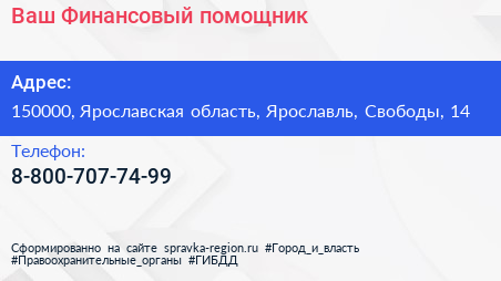 Ваш Финансовый помощник по адресу 150000, Ярославская область, Ярославль, Свободы, 14 в дальнейшем Организация, размещена в следующих категориях: