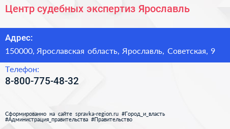 Центр судебных экспертиз-Ярославль по адресу 150000, Ярославская область, Ярославль, Советская, 9 в дальнейшем Организация, размещена в следующих категориях: