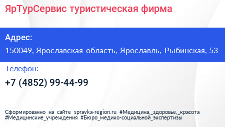 ЯрТурСервис, туристическая фирма по адресу 150049, Ярославская область, Ярославль, Рыбинская, 53 в дальнейшем Организация, размещена в следующих категориях: