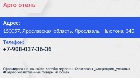 Арго, отель по адресу 150057, Ярославская область, Ярославль, Ньютона, 34Б в дальнейшем Организация, размещена в следующих категориях: