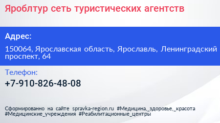 Яроблтур, сеть туристических агентств по адресу 150064, Ярославская область, Ярославль, Ленинградский проспект, 64 в дальнейшем Организация, размещена в следующих категориях: