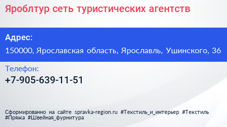 Яроблтур, сеть туристических агентств по адресу 150000, Ярославская область, Ярославль, Ушинского, 36 в дальнейшем Организация, размещена в следующих категориях: